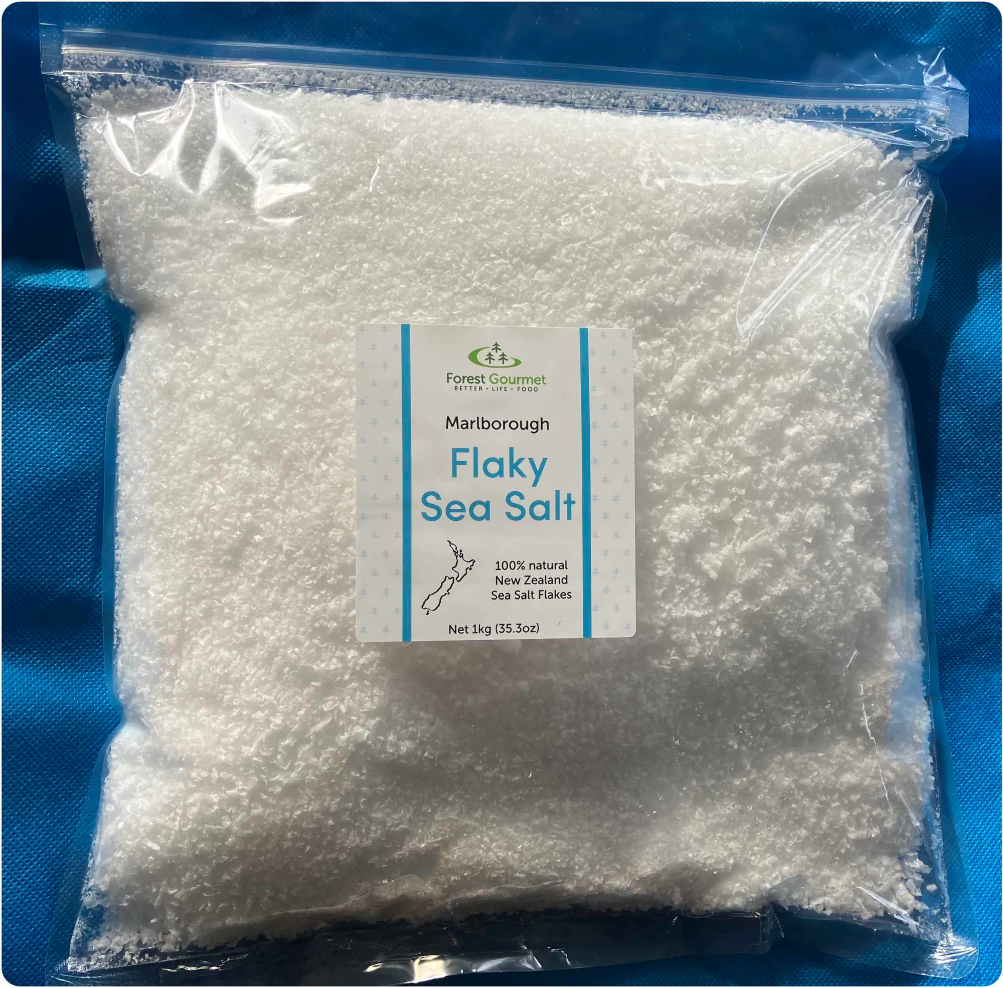 Finest Flaky Sea Salt - sourced from Marlborough New Zealand. Packed in a resealable, 1kg bag.