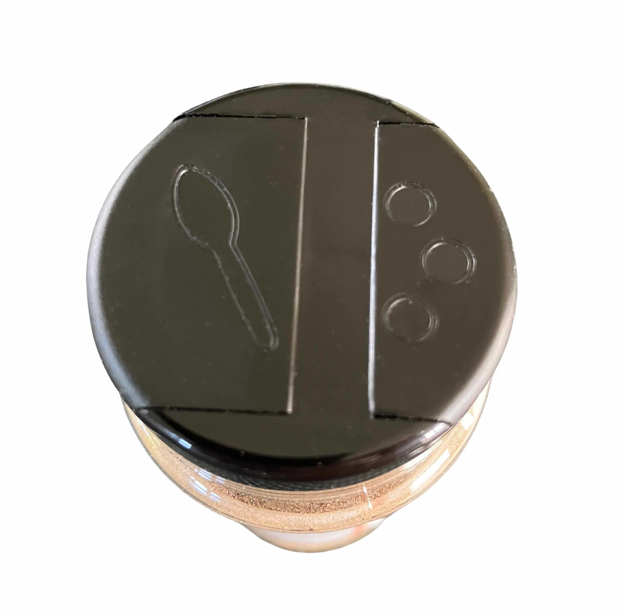 This 25g shaker has a dual flip lid - one side flips open to have 4 small holes for sprinkling, the other side flips open to have 1 larger opening.
