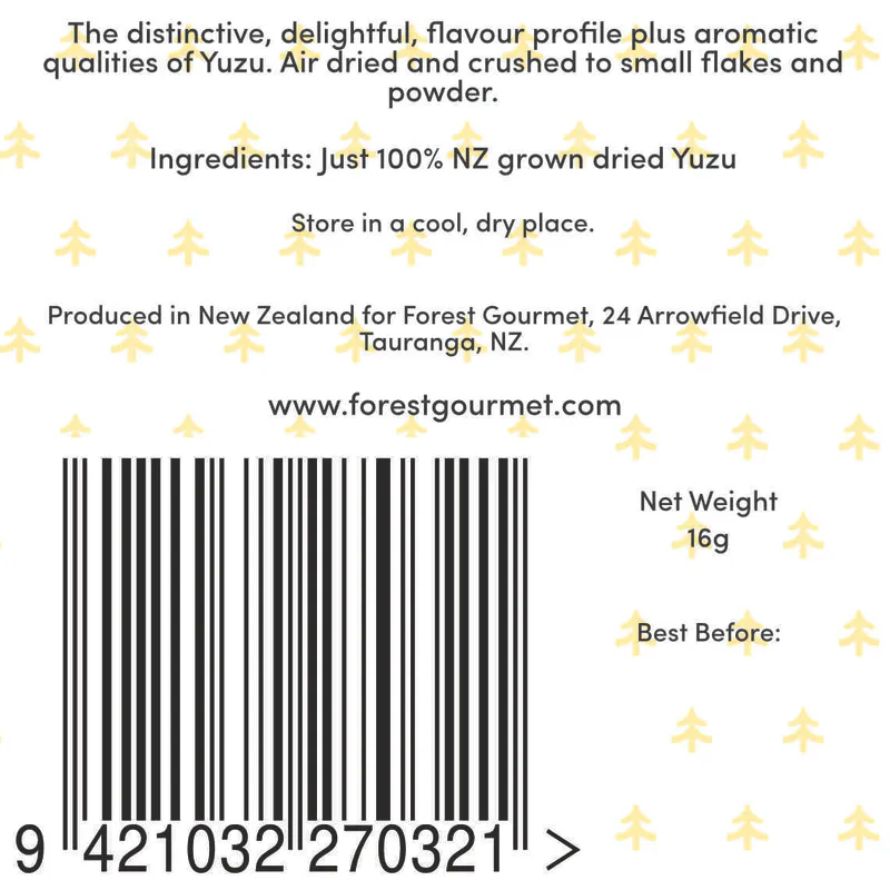This product gives you the distinctive, delightful flavour profile plus aromatic qualities of Yuzu. Ready to use - just sprinkle on or in whatever dish you are making.